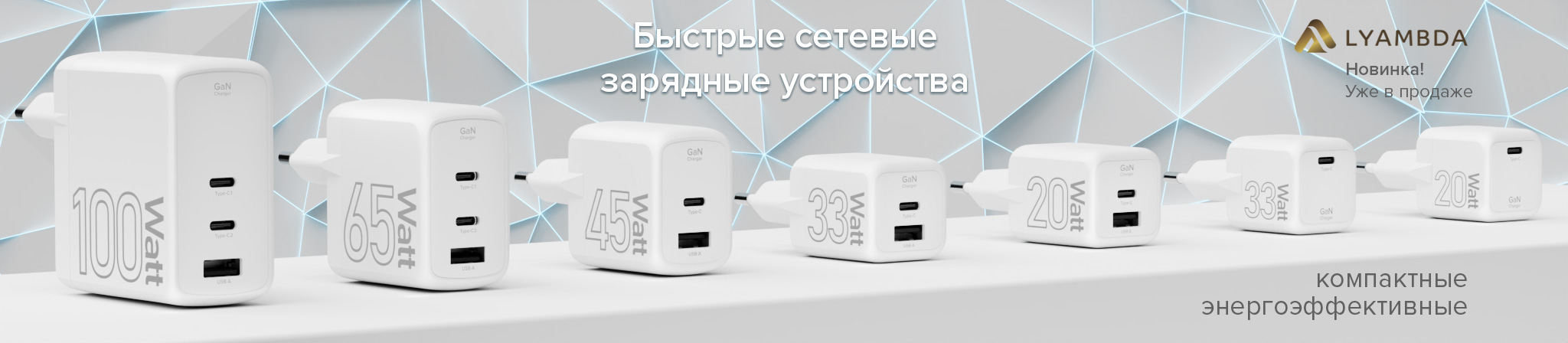 Новые компактные и мощные быстрые сетевые зарядные устройства LYAMBDA с технологией GaN. Их производительность выше, а энергопотребление ниже аналогов.